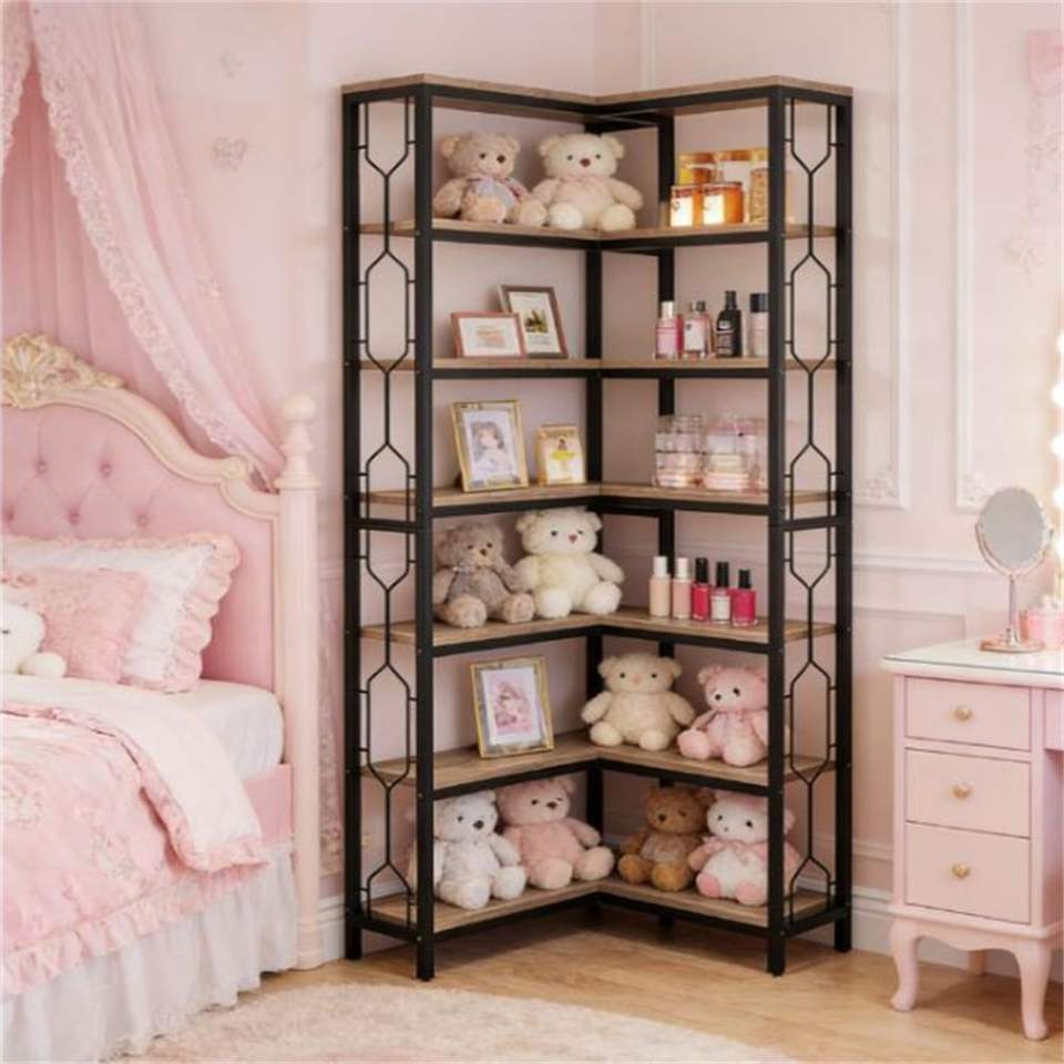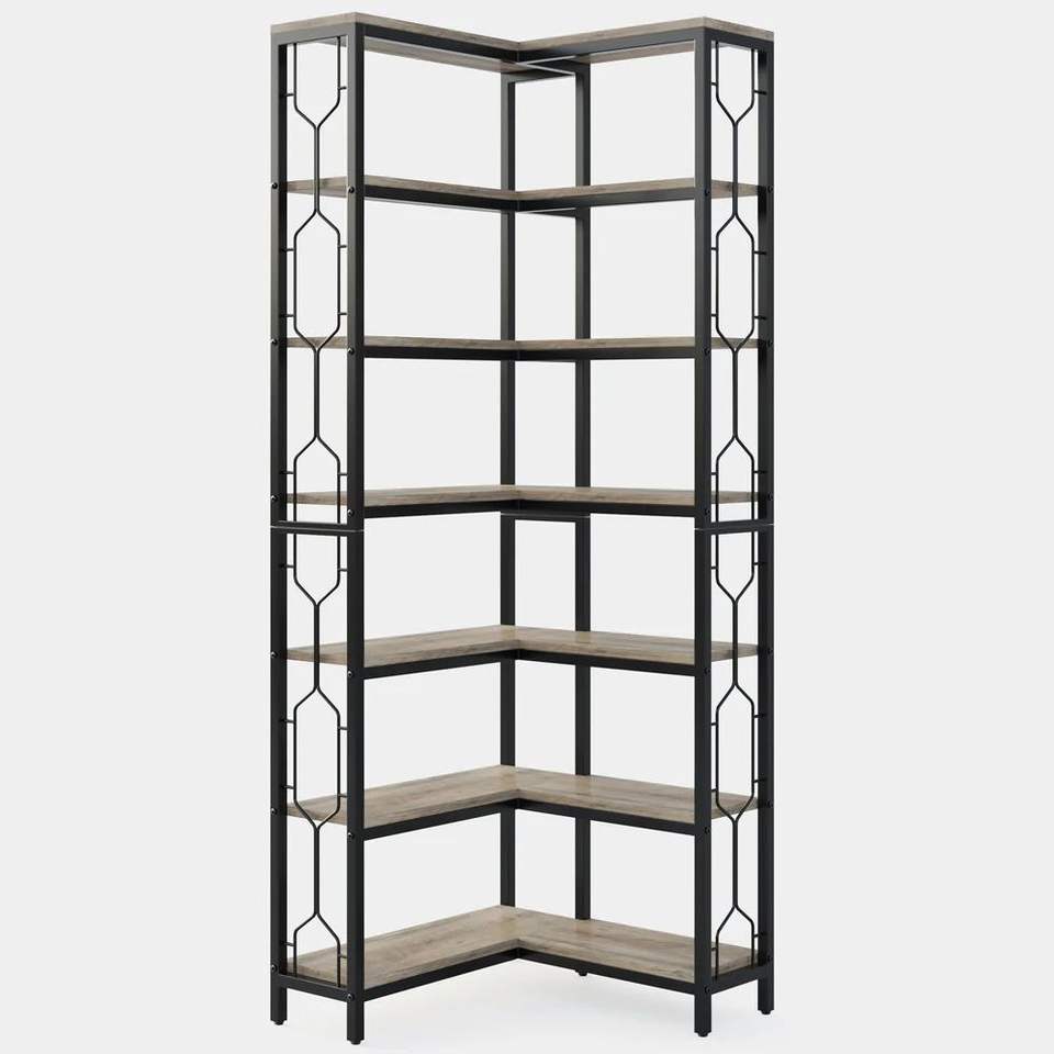Libreria Angolare in Legno con Scaffale Verticale, Espositore Indipendente e Scaffalatura per Libri