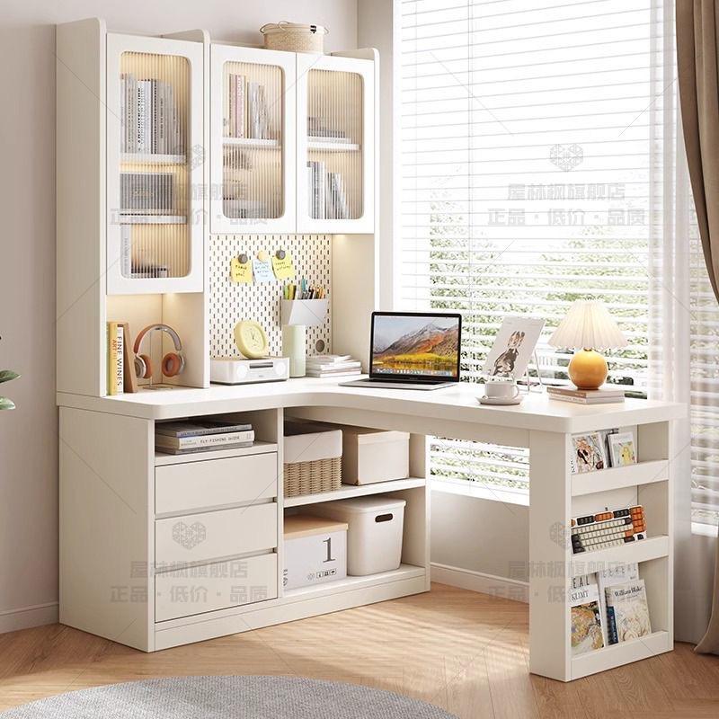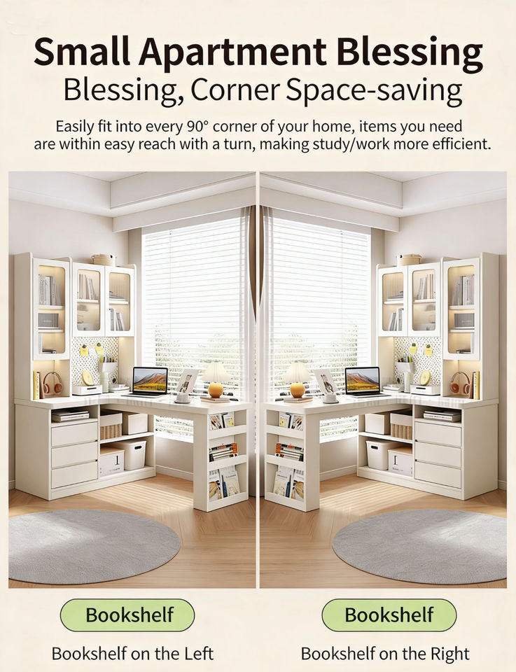Scrivania in Legno con Libreria ad Angolo, Scrivania per Computer Adatta per Appartamenti, Camere da Letto e per lo Studio di Bambini e Studenti
