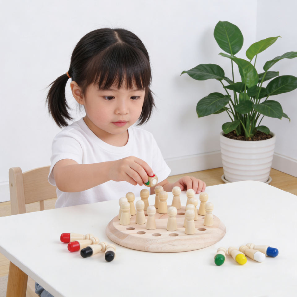 Memo di memoria divertente educativo in legno che abbina il gioco da tavolo a scacchi gioco trova il colore e raccogli i giocattoli