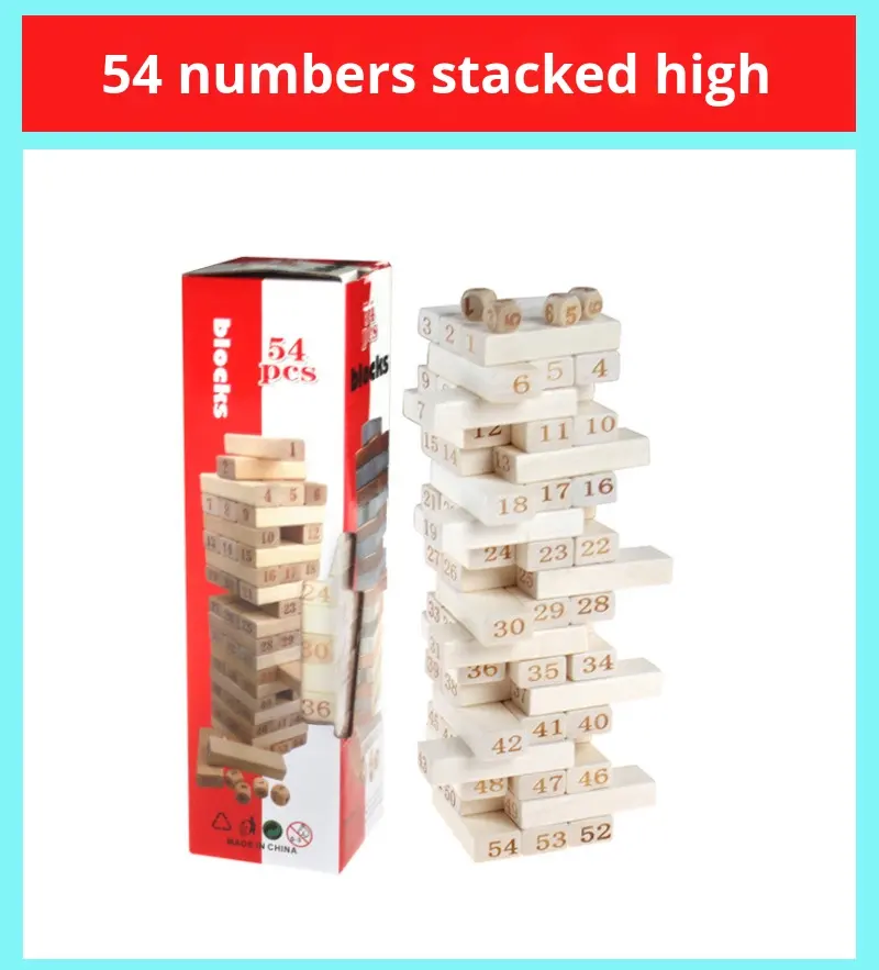 Gioco Educativo in Legno, 54 Pezzi di Blocchi Colorati Grandi da Impilare, Gioco da Tavolo per Bambini, Confezione in Scatola Colorata
