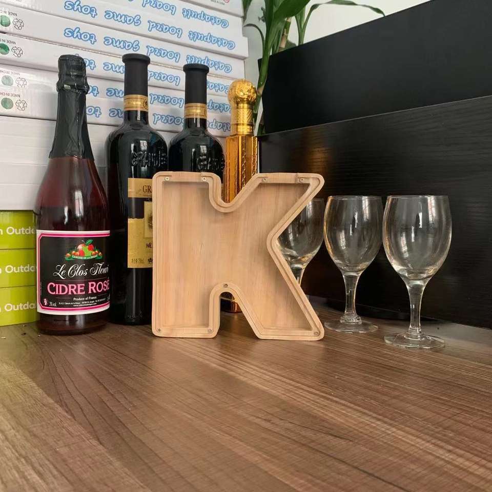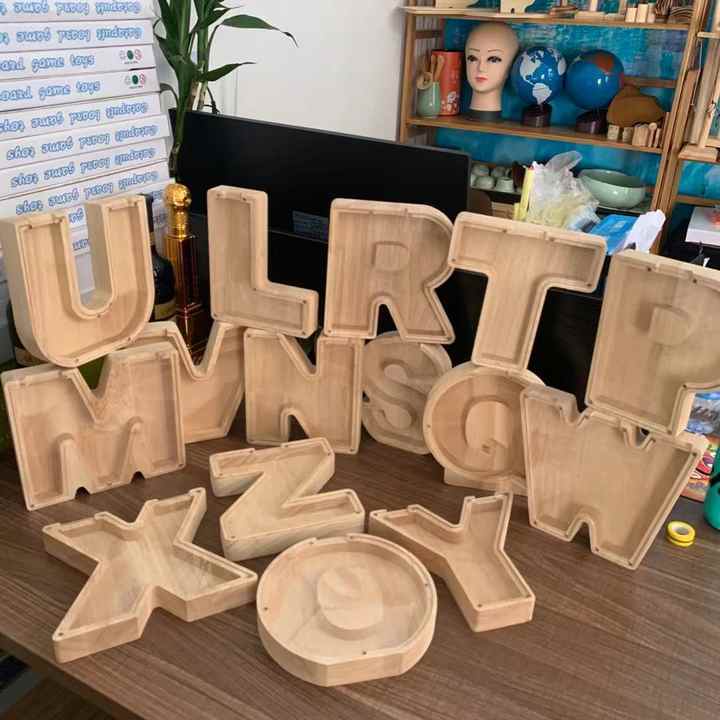 Salvadanaio trasparente con nome alfabeto inglese in legno per bambini