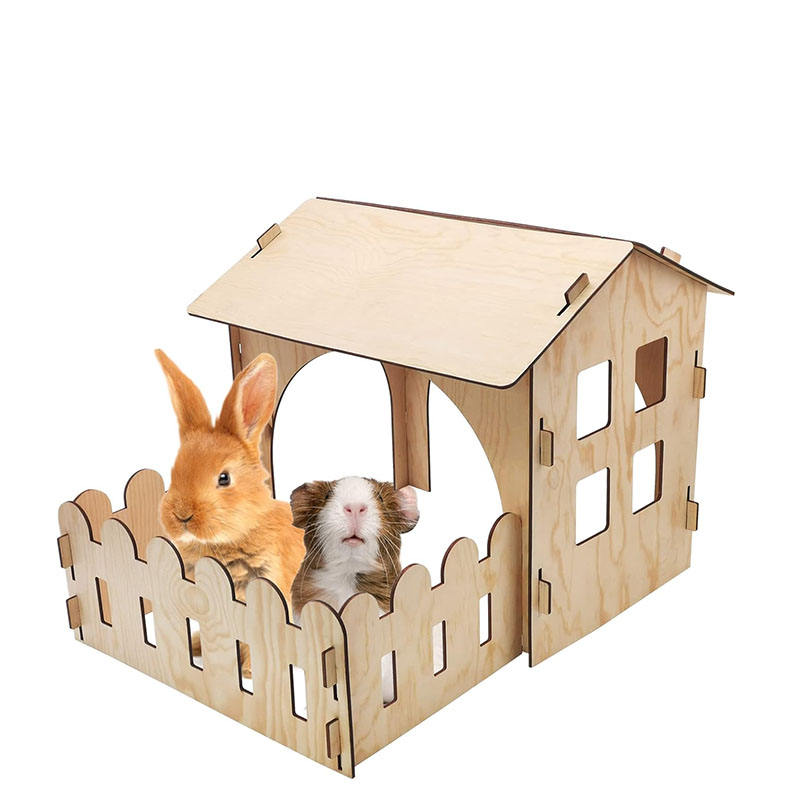 Casetta in Legno Incisa a Forma di Coniglio - Castello, Rifugio, Fortezza Giocattolo - Design Personalizzabile e Durevole