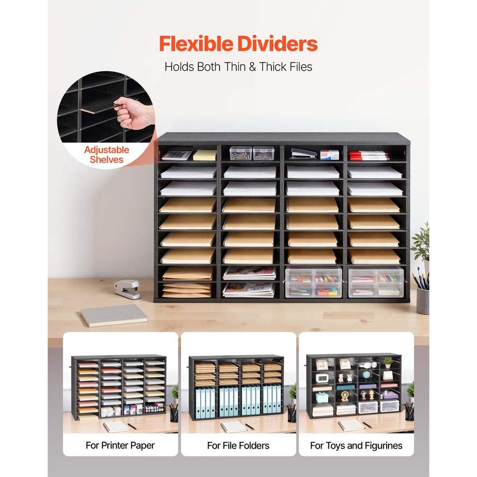 Armadietto Portadocumenti in Legno con 36 Ripiani Rimovibili per Organizzazione Ufficio e Cassette Postali