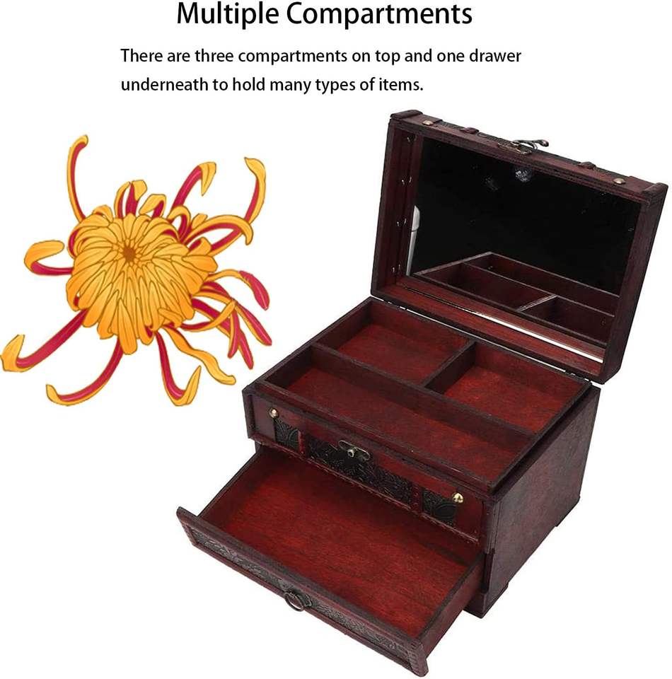 Portagioie in legno con specchio, portagioie in legno classico portagioie portabagagli porta gioielli