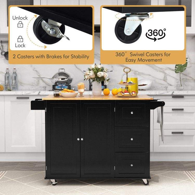 Carrello da Cucina in Legno con Piano Ribaltabile e Armadietto Portaoggetti