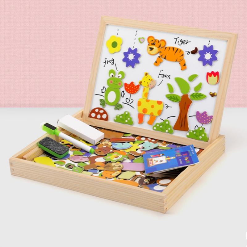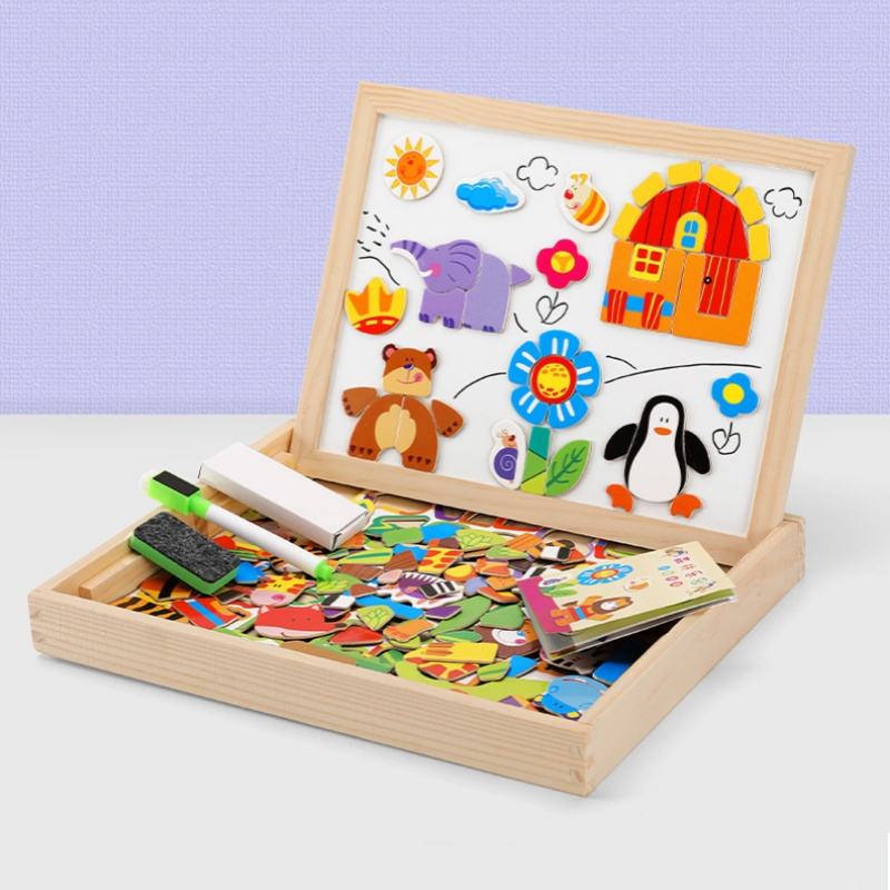 Wooden Montessori Baby Magnetic Puzzle Educational Jigsaw Game Toys Magnetic Drawing Busy Board Toy Gift