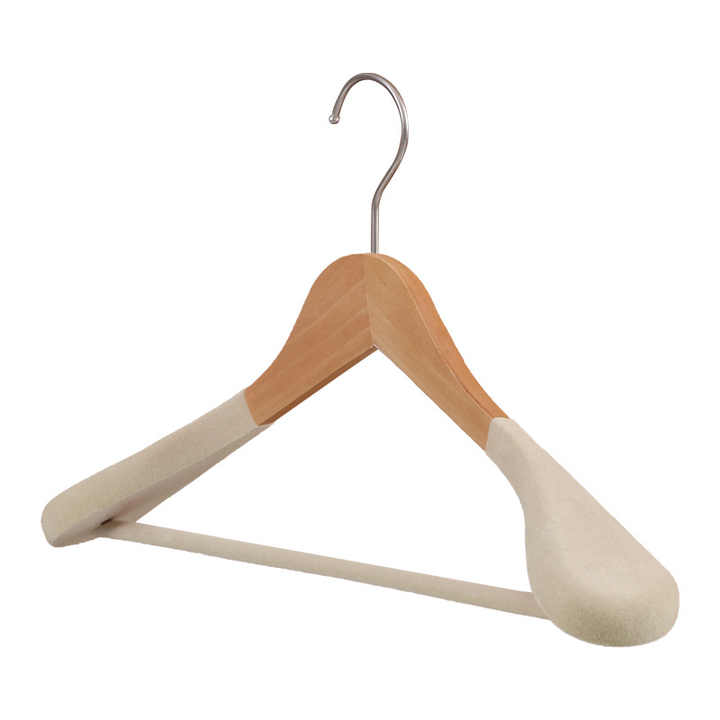 Wooden Non slip Velvet Wide Shoulder Female Ladies Clothes Jacket Coat Suit Display Hangers Wholesale for Long Dresses