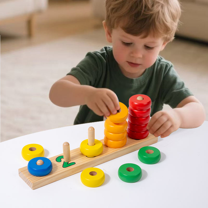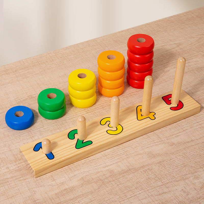Gioco di Conteggio con Numeri in Legno, Giocattoli per Bambini, Puzzle di Ordinamento Colori con 5 Pioli, Anelli Impilabili per Neonati, Anelli Multicolore per Conteggio e Impilamento