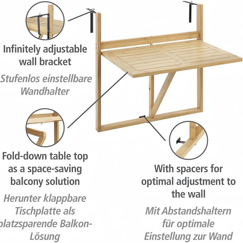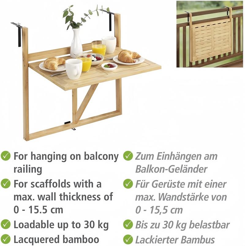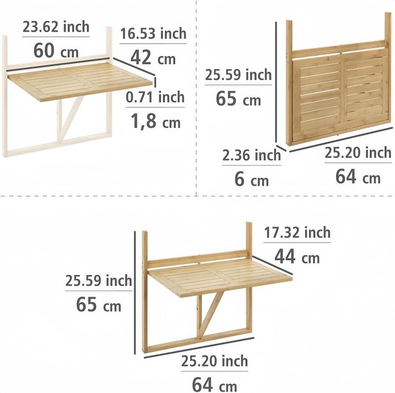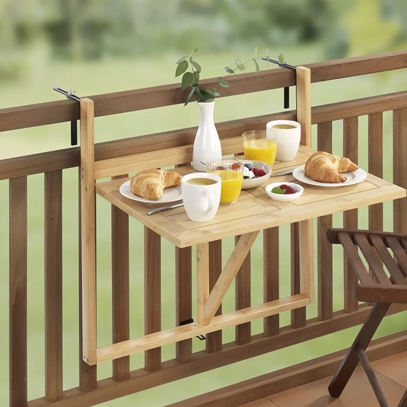 Tavolino da Balcone in Legno per Esterni, Design Moderno Pieghevole e Portatile per il Tè del Pomeriggio