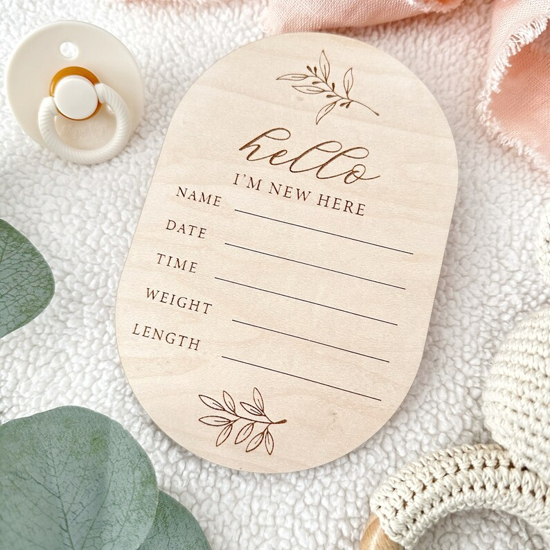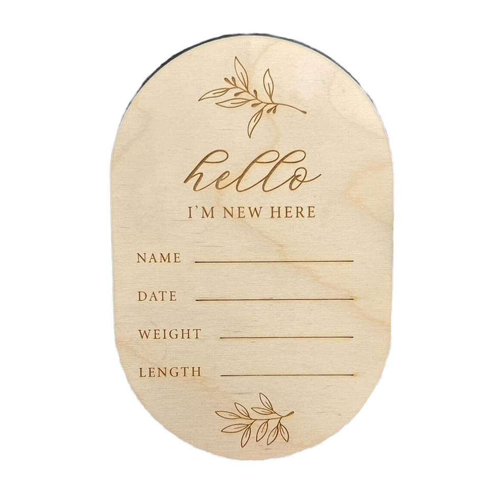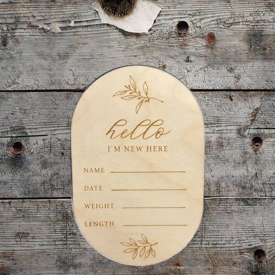 Wooden Oval I'm New Here Newborn Sign Board for Birth Announcement Engraved Letters Model Home Decor Craft Art Souvenir Card