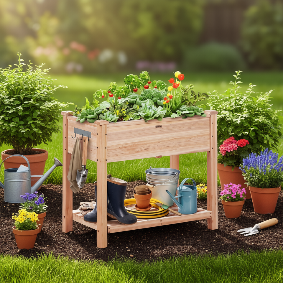 Fioriera rialzata in legno 33.9x18.1x30 pollici per la coltivazione di fiori, verdure ed erbe aromatiche