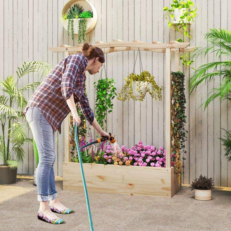 Fioriera Rialzata in Legno con Traliccio e Tetto Sospeso, Cesti e Accessori per Piante