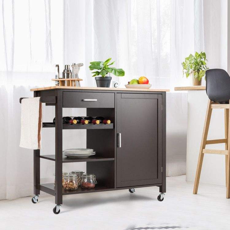 Carrello di Servizio in Legno con Ruote, Trolley da Cucina
