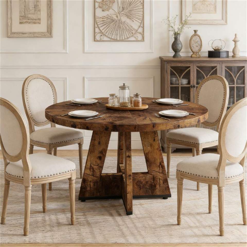Tavolo da Pranzo Rotondo in Legno per Cucina e Salotto