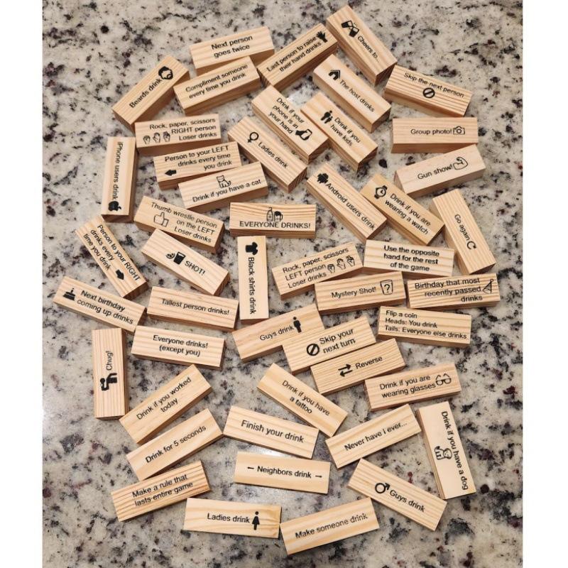 Mattonelle di legno che costruiscono giocattoli impilabili per bambini e adulti che bevono giochi e artigianato