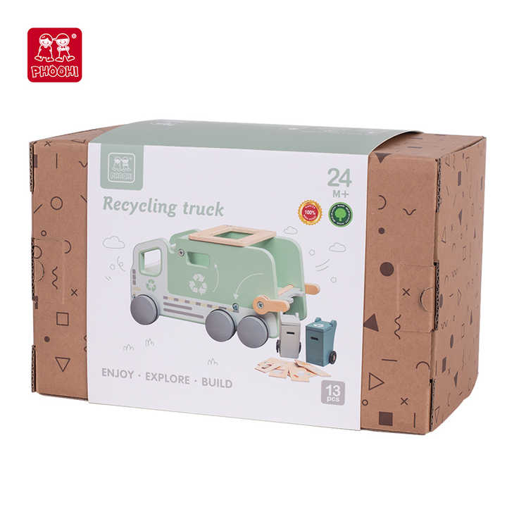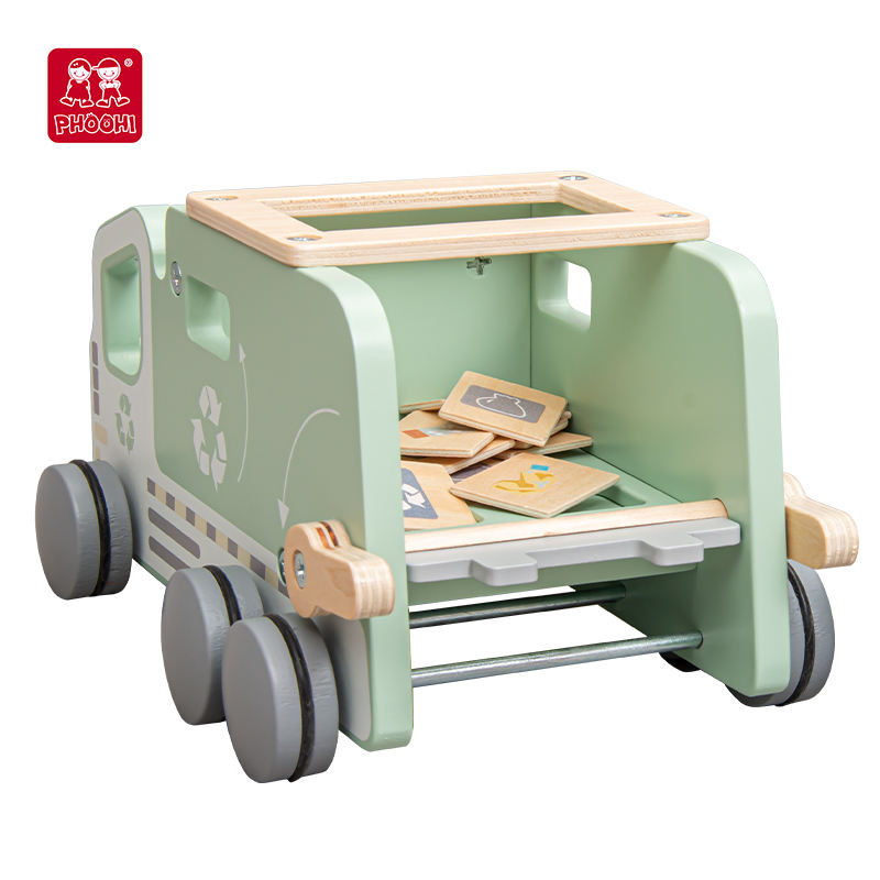 Wooden Waste Garbage Trash Truck Educational Recycling Truck Toy for Preschool
