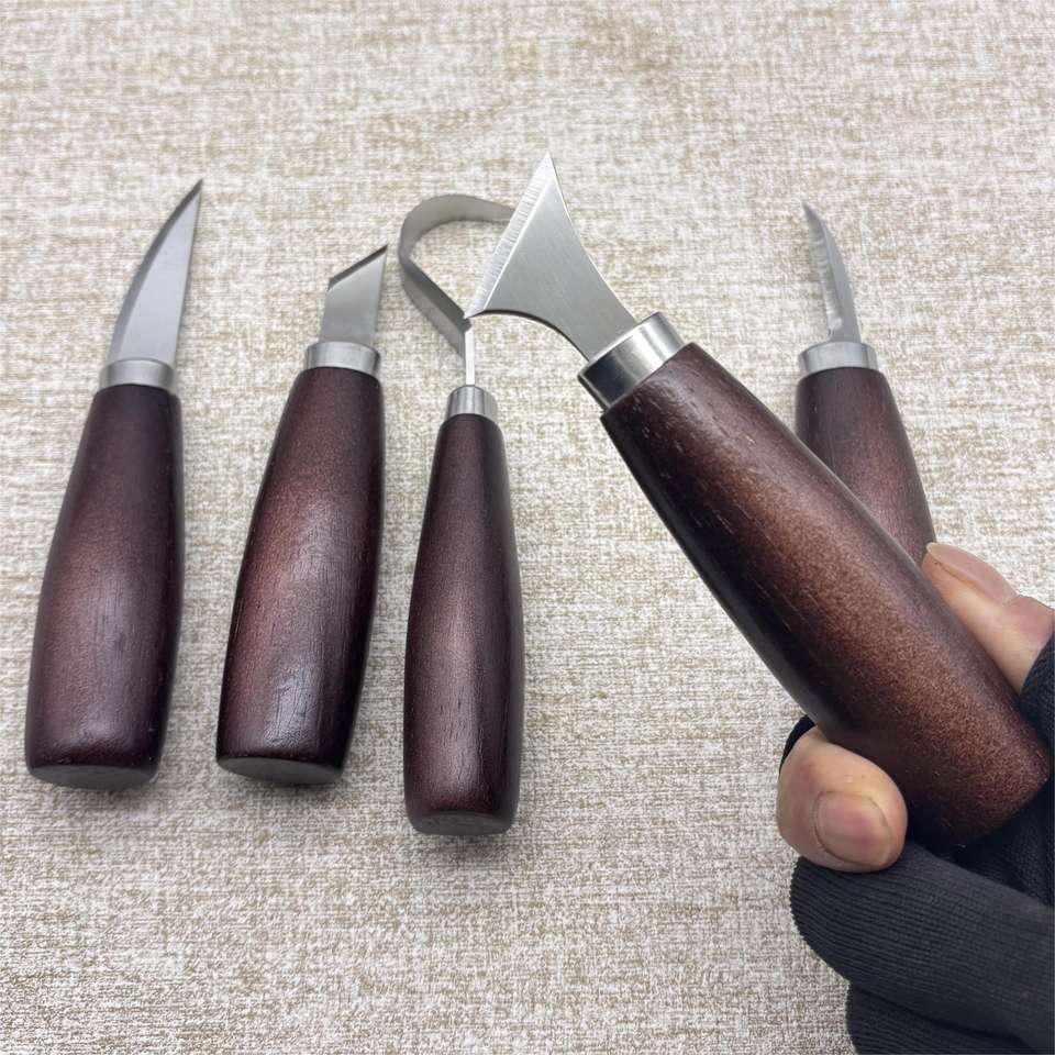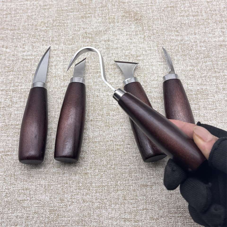 Woodworking Carving Tools Whittling Knives Hook Knives Woodworking Chisels-Industrial Grade Stainless Steel Black Walnut Handles