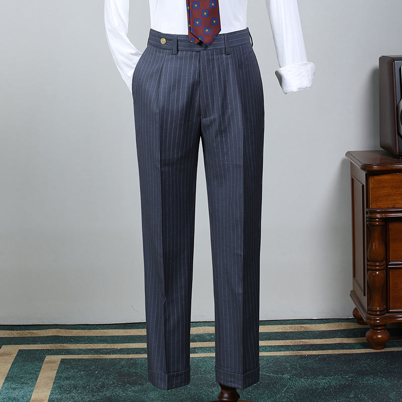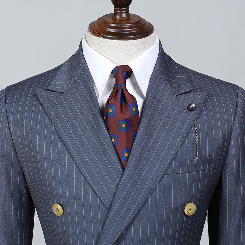 Abito da uomo con risvolto a punta in lana classica a righe blu Navy Casual 2 pezzi doppiopetto