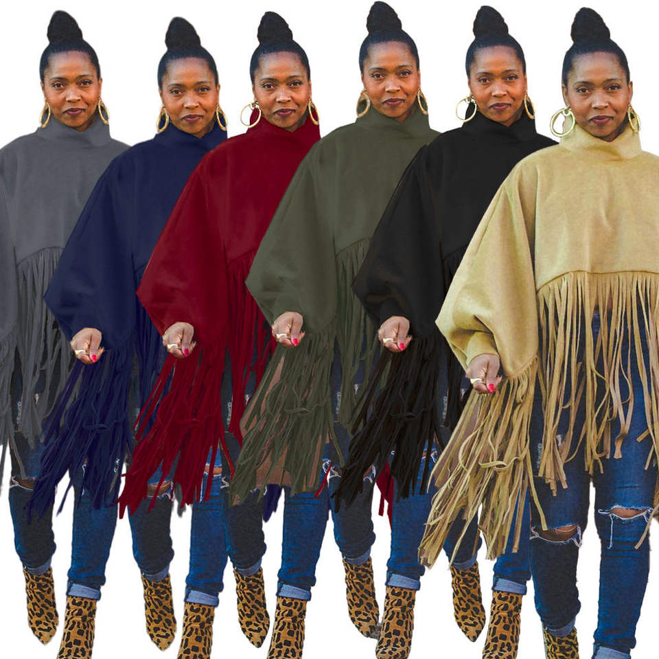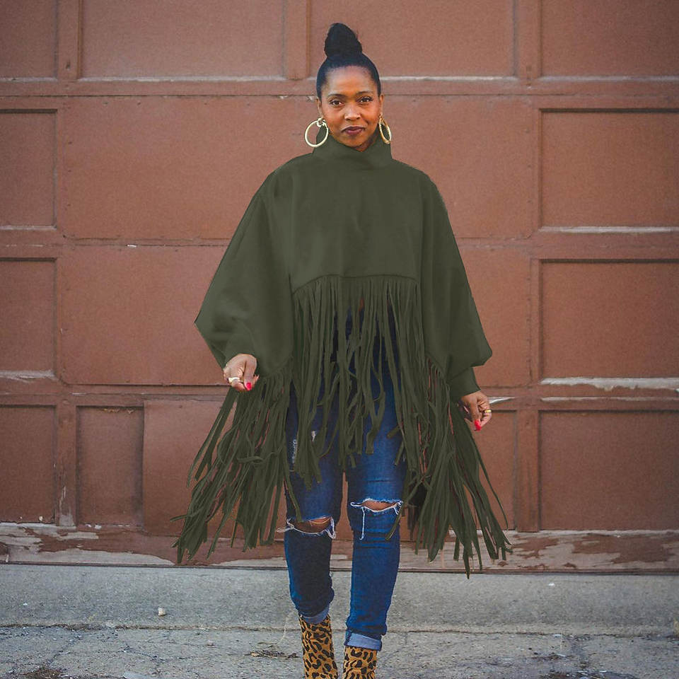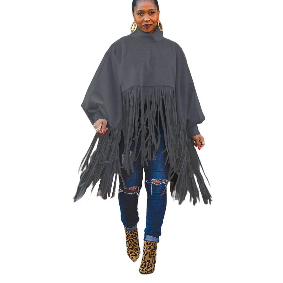 Cappotto Lungo in Lana con Maniche Lunghe e Frange per Donna Taglie Forti