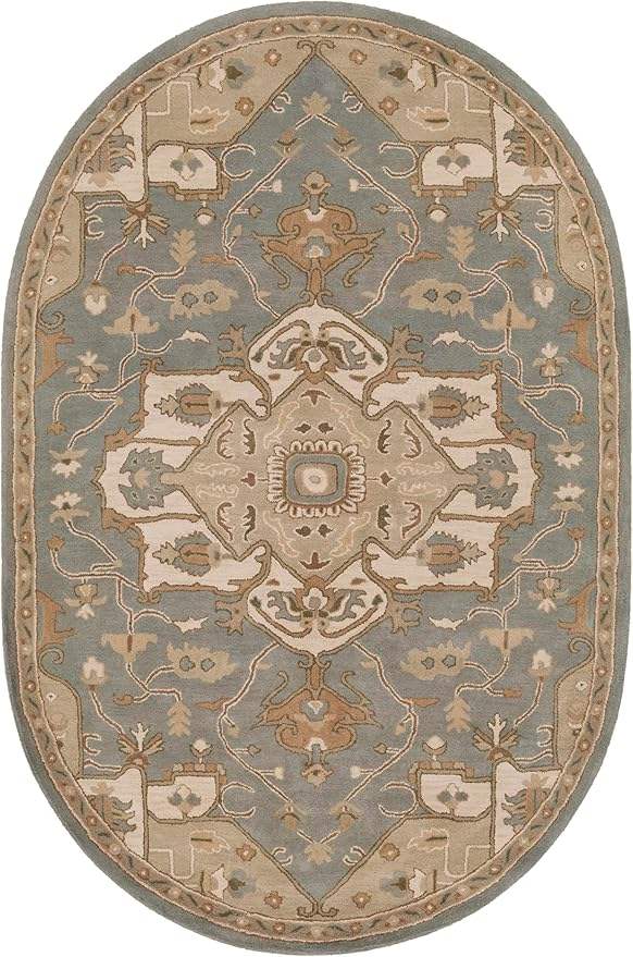 Tappeti in Lana 6x9 Roblin, Tappeto Ovale Astratto Grigio Medio, Marrone, Blu, Beige, Imbottito Antiscivolo per Soggiorno, Camera da Letto, Cucina