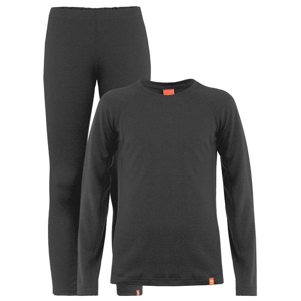 Set di Biancheria Intima Termica per Bambini in Morbida Lana Merino Nera, Età 2-10 Anni