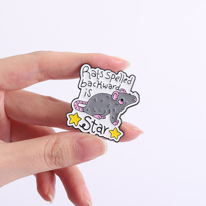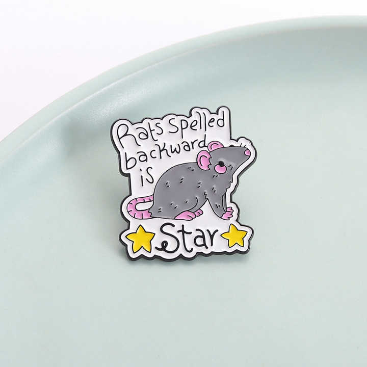 Spilla a Forma di Topo con Scritta 'Word Play Mouse Pin Rats' Invertita, Design Divertente con Orecchie Rosa e Roditore Grigio per Accessori di Humor Linguistico