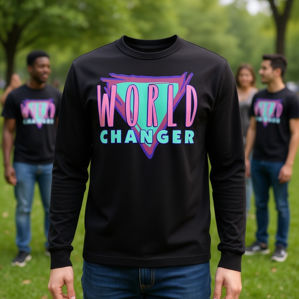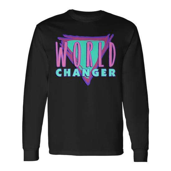 T-shirt a maniche lunghe World Changer nera 100% cotone design unisex