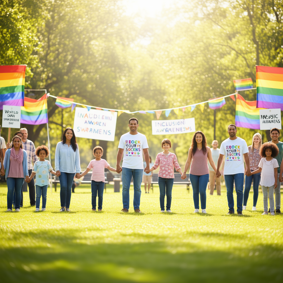 T-shirt a maniche lunghe per la sensibilizzazione per la Giornata mondiale della sindrome di Down, T-shirt promozionale Rock Your Socks