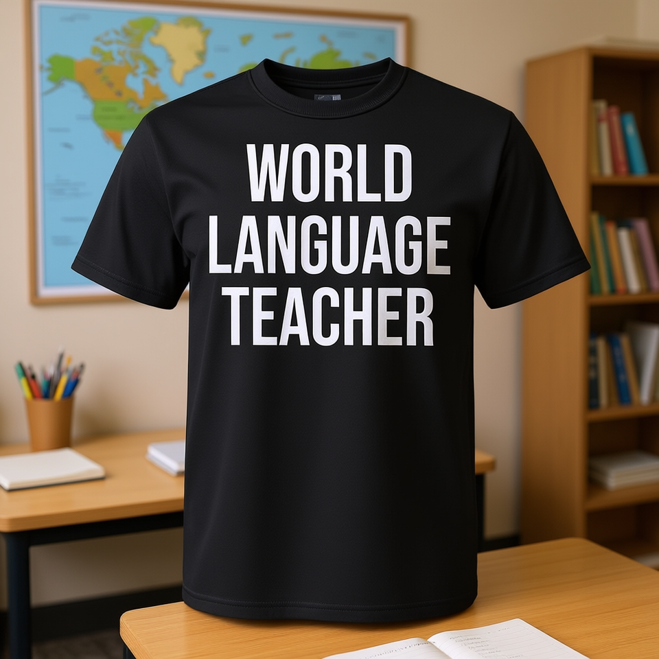 T-shirt per insegnanti di lingue straniere, nera, unisex, girocollo, manica corta, regalo di laurea per il ritorno a scuola
