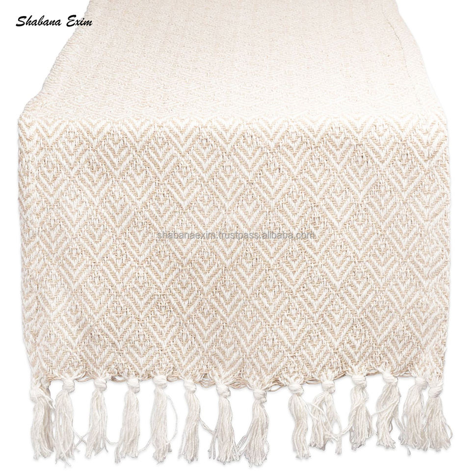 Runner da tavolo da cucina intrecciato a mano lungo rettangolo in cotone Runner da tavolo Vintage moderno da pranzo Boho Runner