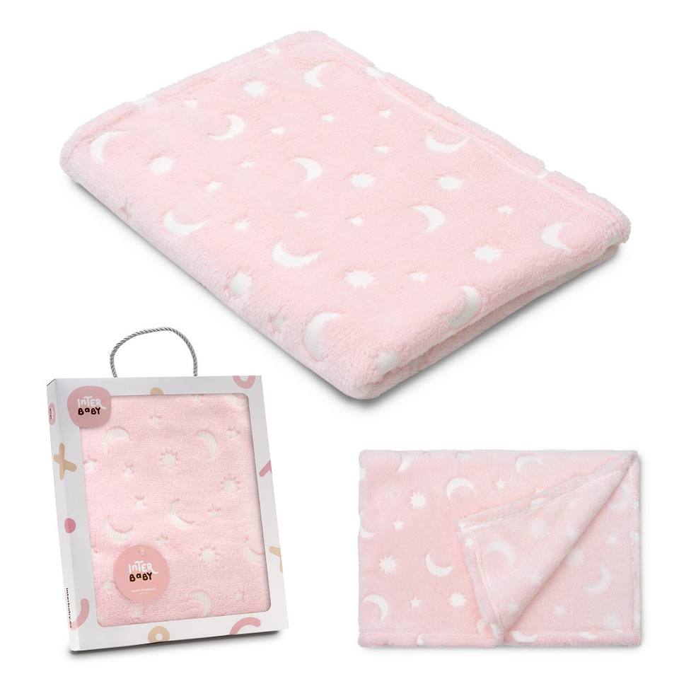 Woven Plush Blanket Printed Luna Estrellas Design 80x110 Cms Pink Color
