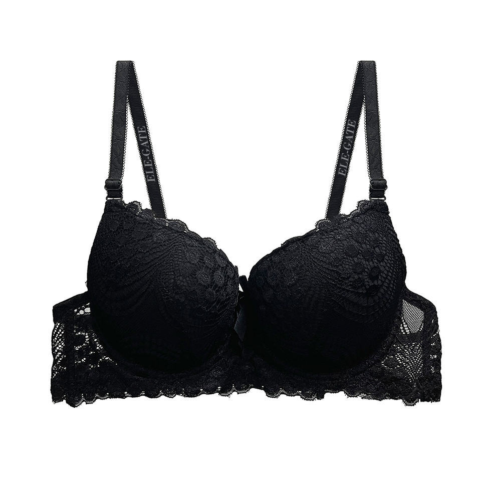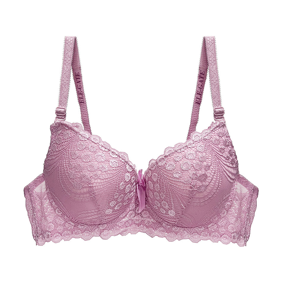 Reggiseno Intero in Poliammide Intrecciato con Pizzo Floreale, Chiusura Frontale, Push-Up, Traspirante, Imbottito, Tinta Unita, Coppe Stampate con Bottoni