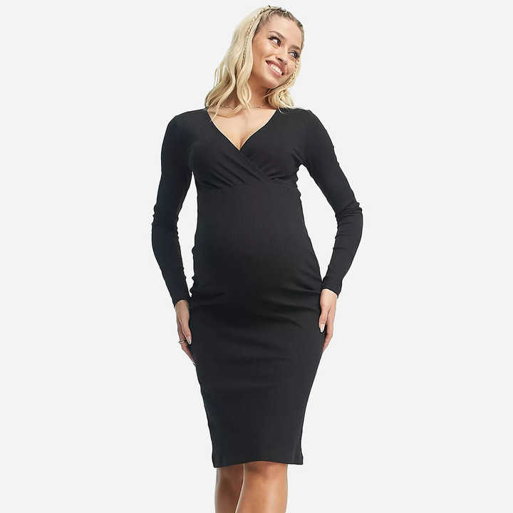 Vestiti all'ingrosso di abbigliamento premaman avvolgente maniche lunghe a costine