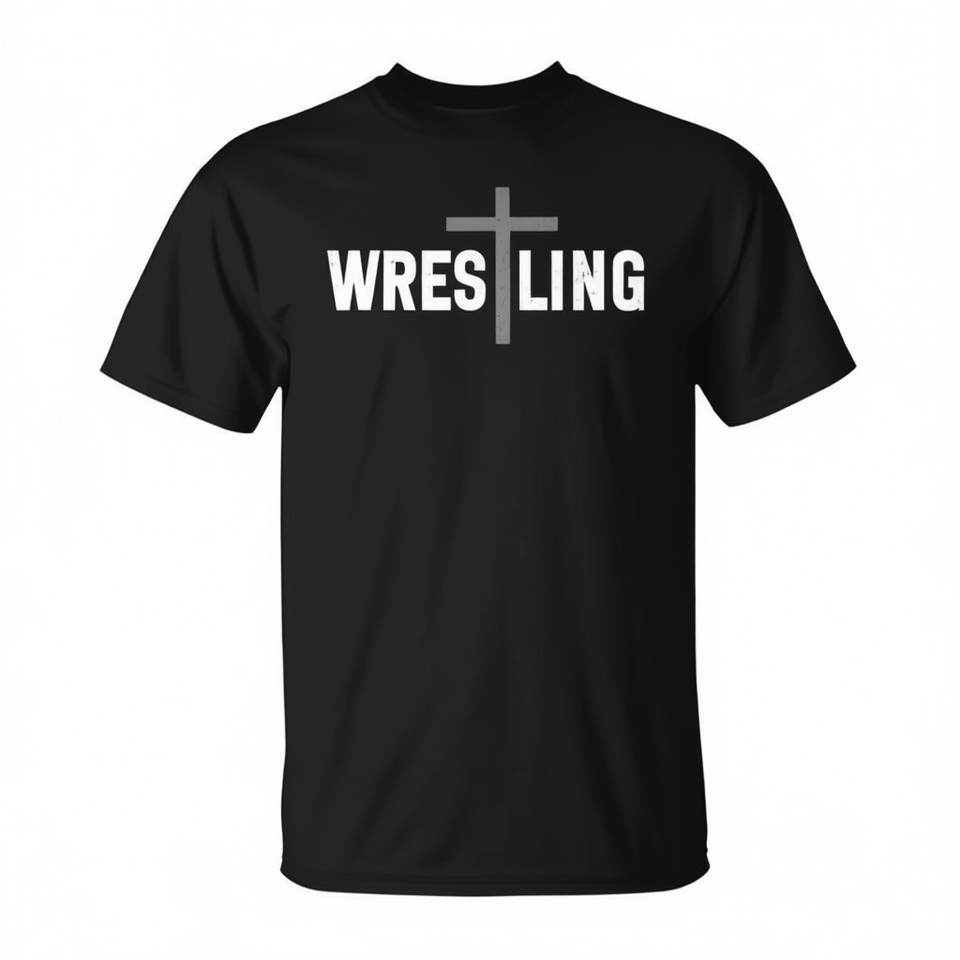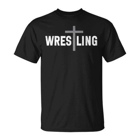 T-shirt a maniche corte con girocollo e croce cristiana da wrestling per ragazzi, taglie S, M, L