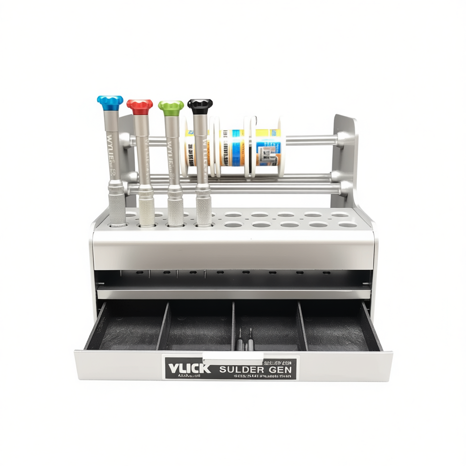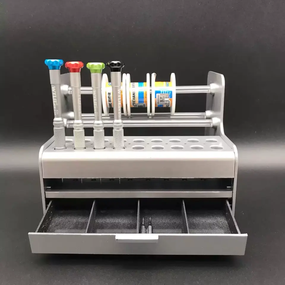 Organizzatore per Cacciaviti in Metallo Resistente Wylie con Supporto per Bobine e Cassetto Portaoggetti per Strumenti di Riparazione Elettronica