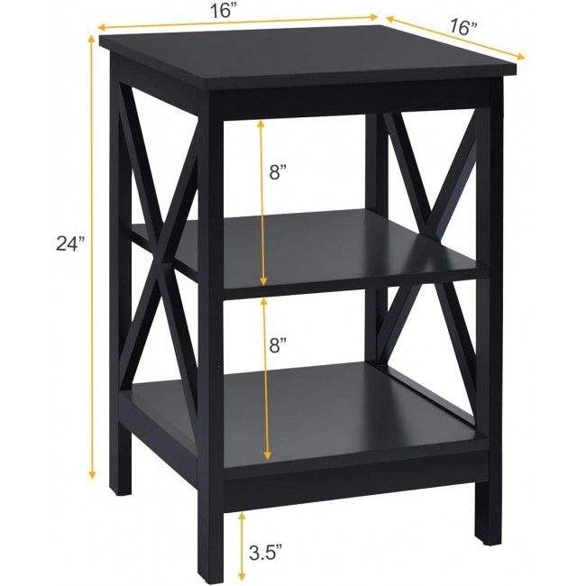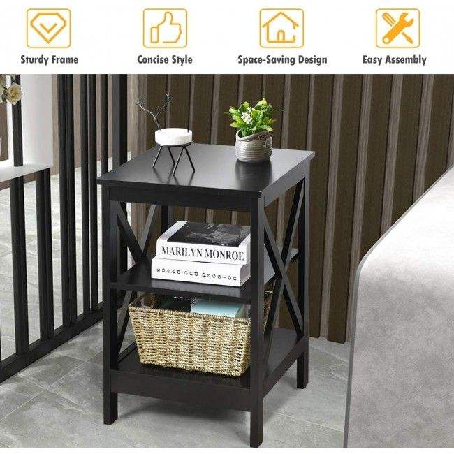 X-Design 3-Tier Nightstand with Storage Shelves