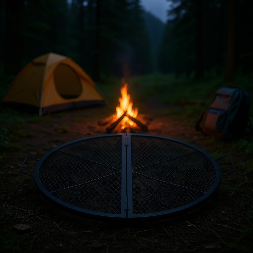 Griglia per Braciere in Acciaio X-Marks da 36 Pollici, Pieghevole, con Manici, Nera, per Campeggio e Barbecue all'Aperto
