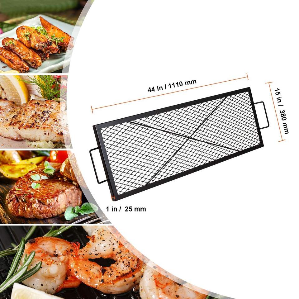 Griglia Rettangolare X-Marks in Acciaio Resistente per Barbecue da Campeggio con Supporto a Manico a X, Accessori per Braciere