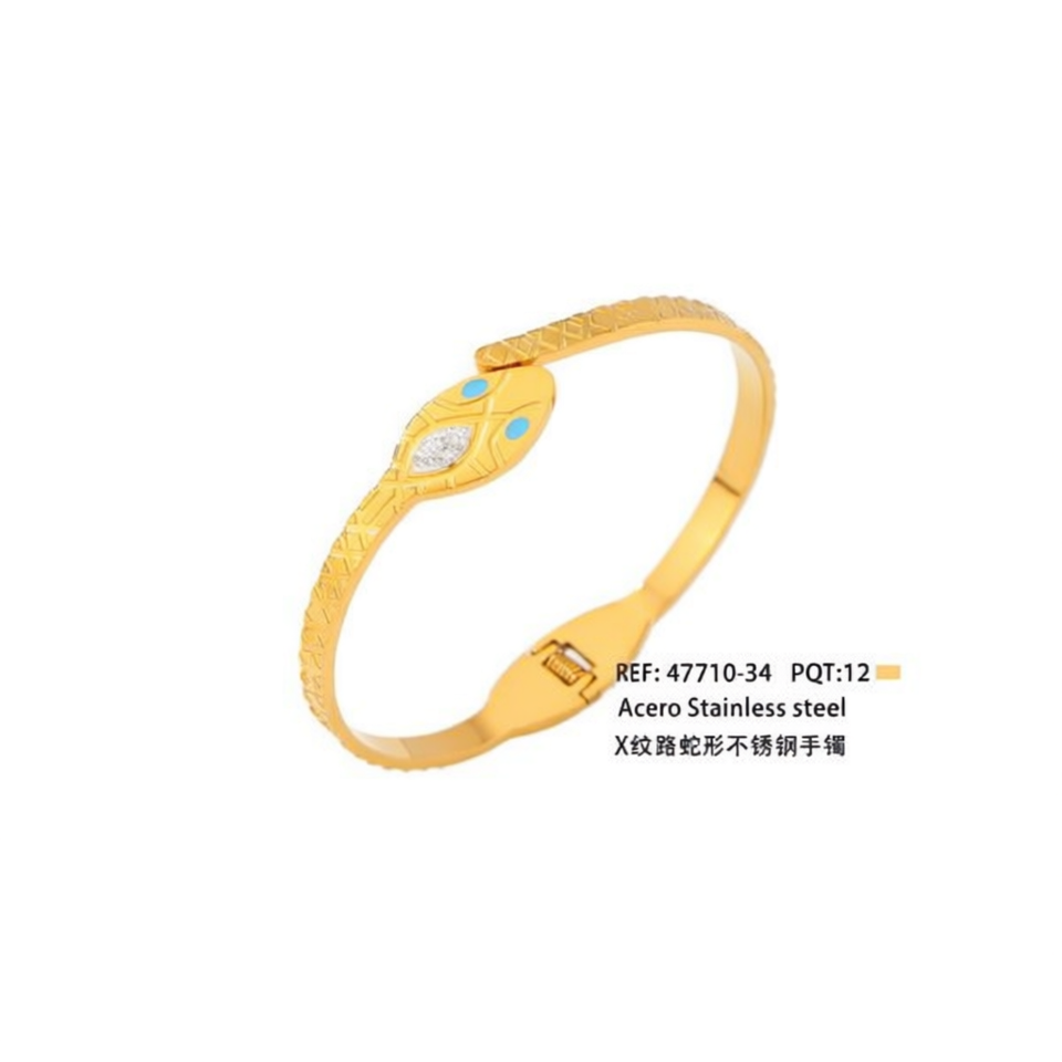 Bracciale in Acciaio Inossidabile a Forma di Serpente con Motivo a X, Colore Oro, Gioielli alla Moda