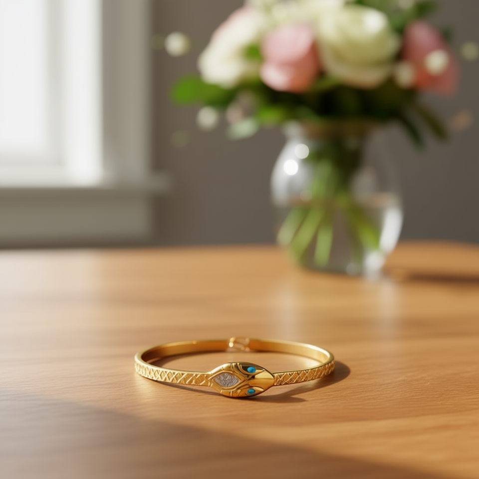 Bracciale a Forma di Serpente Angelina Placcato Oro, Gioiello Unisex alla Moda con Incastonatura di Zirconi, Design Trendy