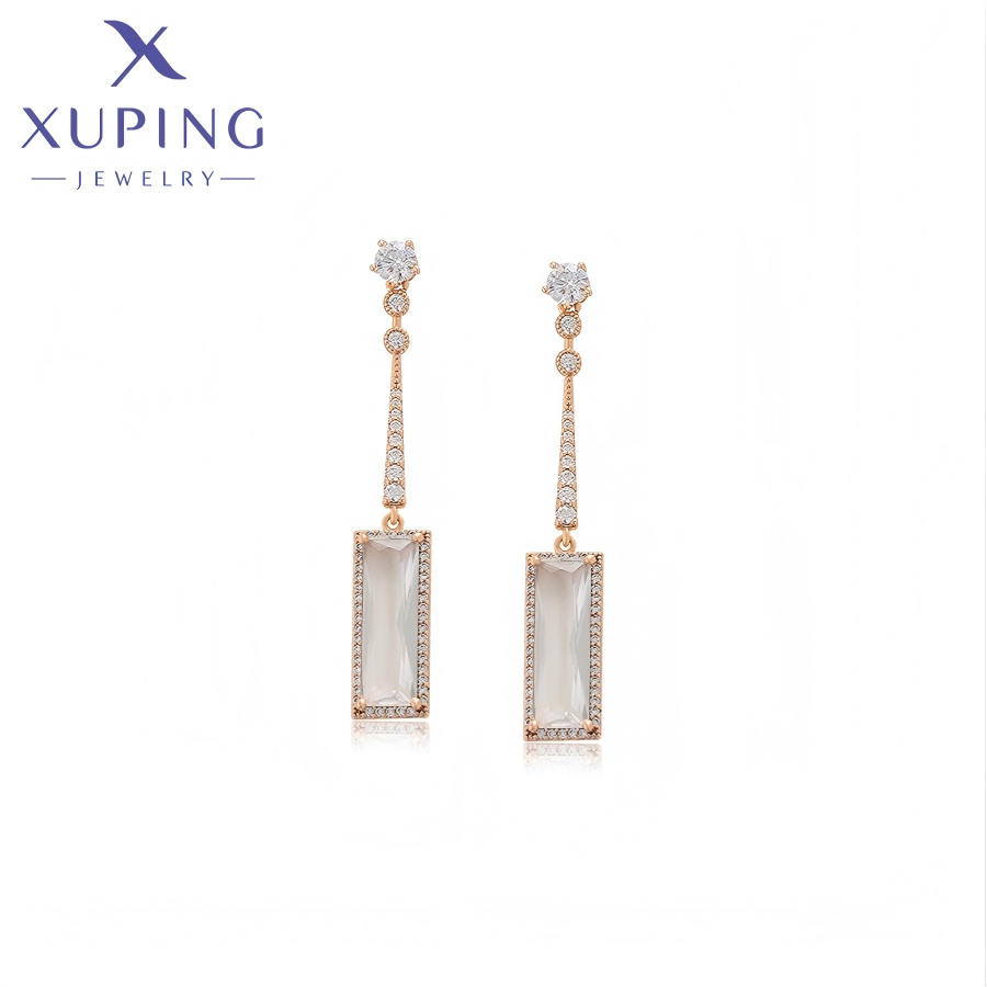 X000753441 XUPING Orecchini Pendenti Lunghi Rettangolari con Zirconi Placcati Oro 18K per Donne, Stile Minimalista, Vendita all'Ingrosso
