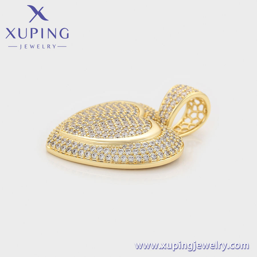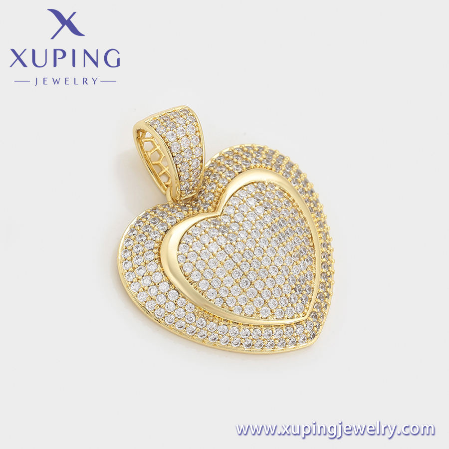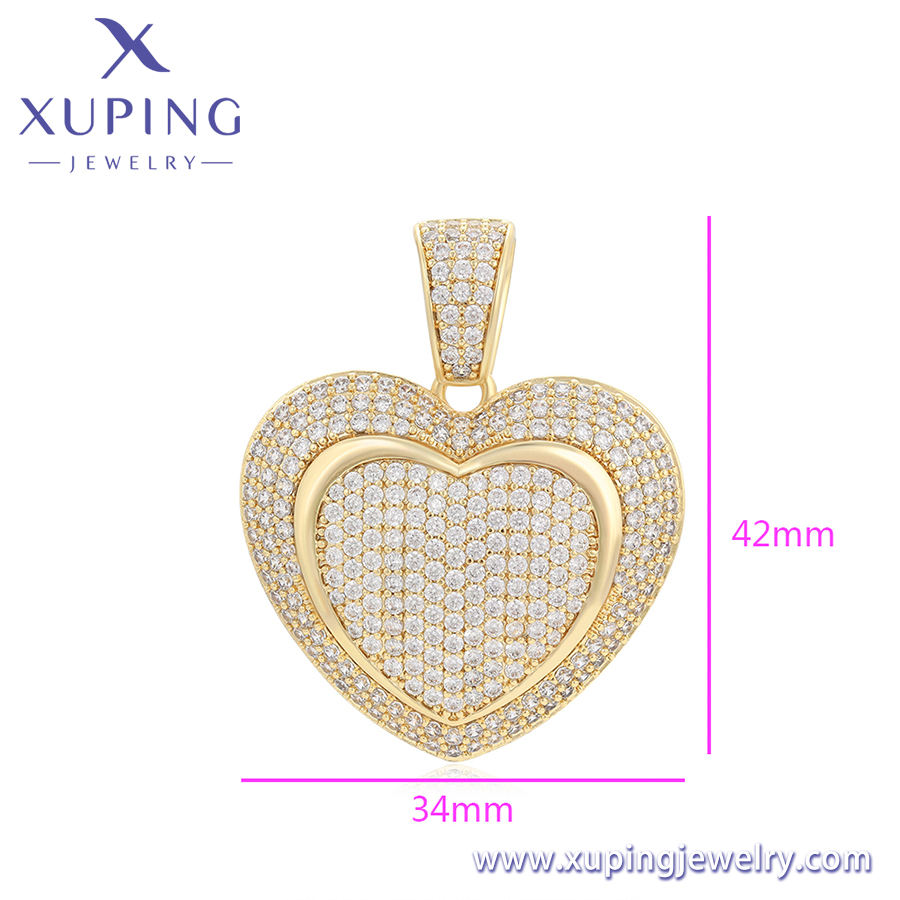 X000864280 Xuping Jewelry Wholesale Fashion Trendy 14K Gold Plated Heart Iced Out Bling Rapper Fashion Big Pendant