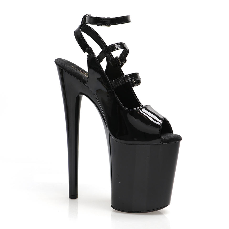 X009 Black Leaky Toe Platform High Heels Striptease Sexy Super High Heels 20 cm Buckle Sandals Women's Large Summer High Heels