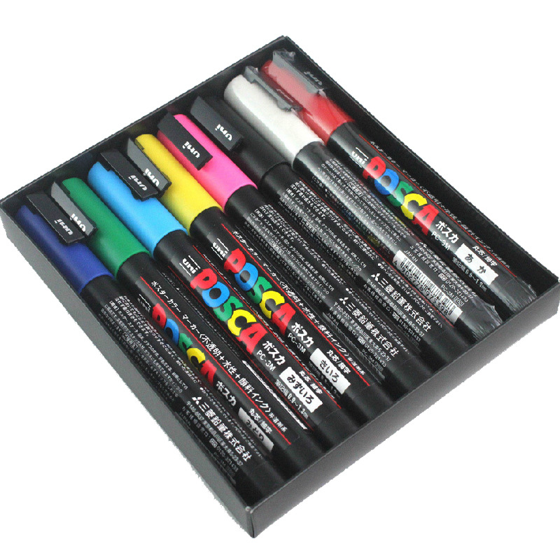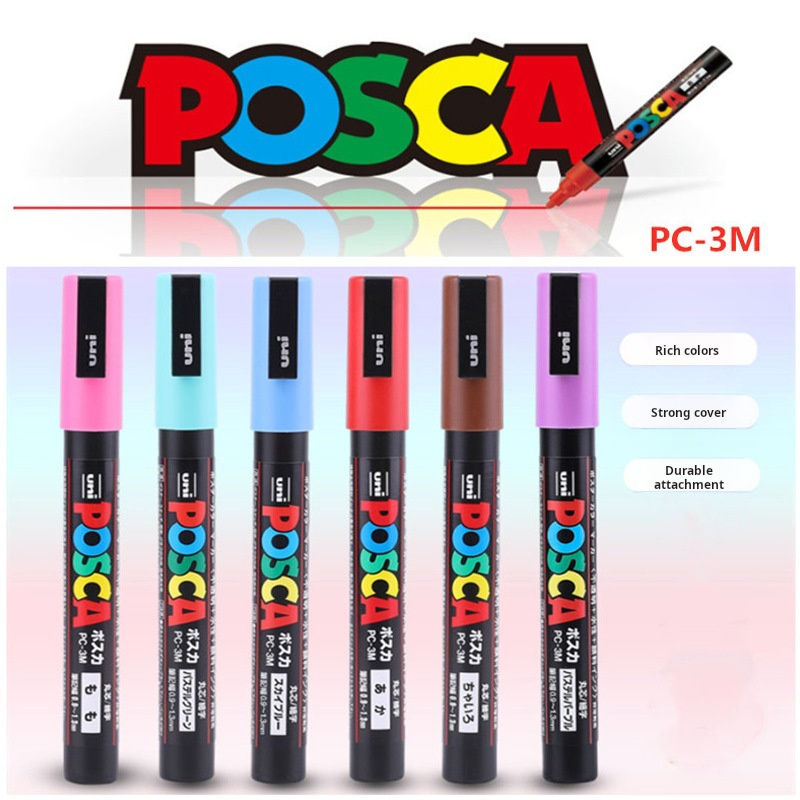 X1008-2 Set di Pennarelli Acrilici PC-3M Posca per Diari Personalizzati, Marcatori Artistici a Punta Fine per Poster - Set per Metallo, Vetro, Plastica