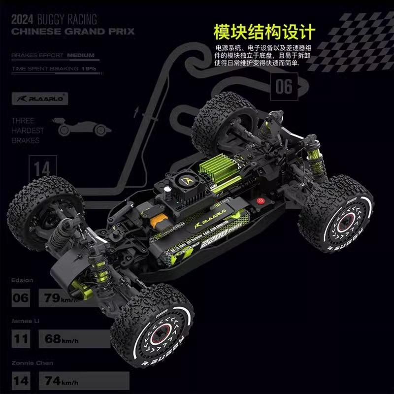 Telaio in PC da 1,2 mm: Il telaio realizzato in policarbonato da 1,2 mm e lega di alluminio ad alta resistenza garantisce durata e robustezza, consentendo all'auto radiocomandata di resistere a condizioni off-road difficili.