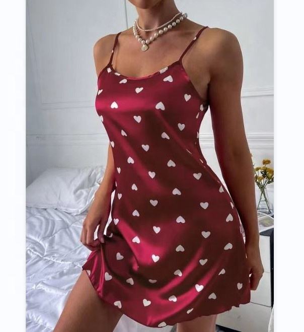 X2218 nuovo arrivo abiti da notte con stampa grazioso cuore maturo in raso per le donne intimo camera da letto Sexy da sposa donna