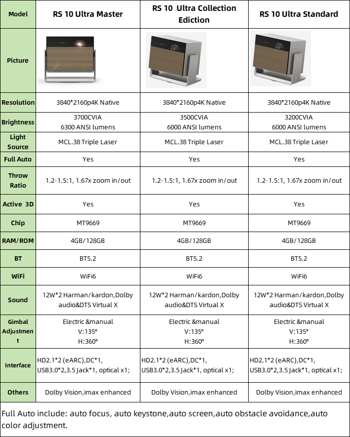 XGIMI RS 10 Ultra Master Proiettore Laser Smart 4K per Home Theater, 3700 CVIA, Dolby Vision, 4GB+128GB, Proiettore per Xgimi