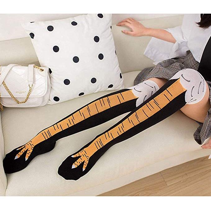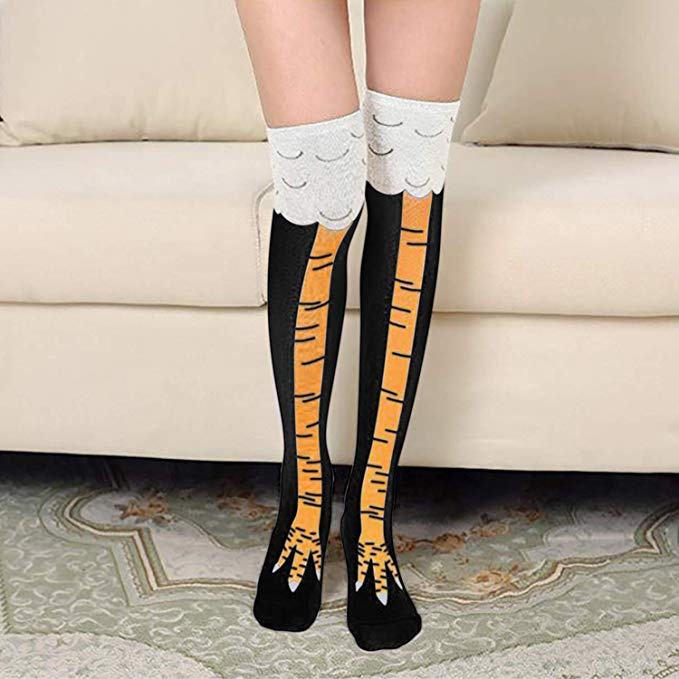 Calzini per cosce di pollo XIANGHUI Unisex divertenti e folli costumi da corsa per feste calzini al ginocchio con gambe Cluck
