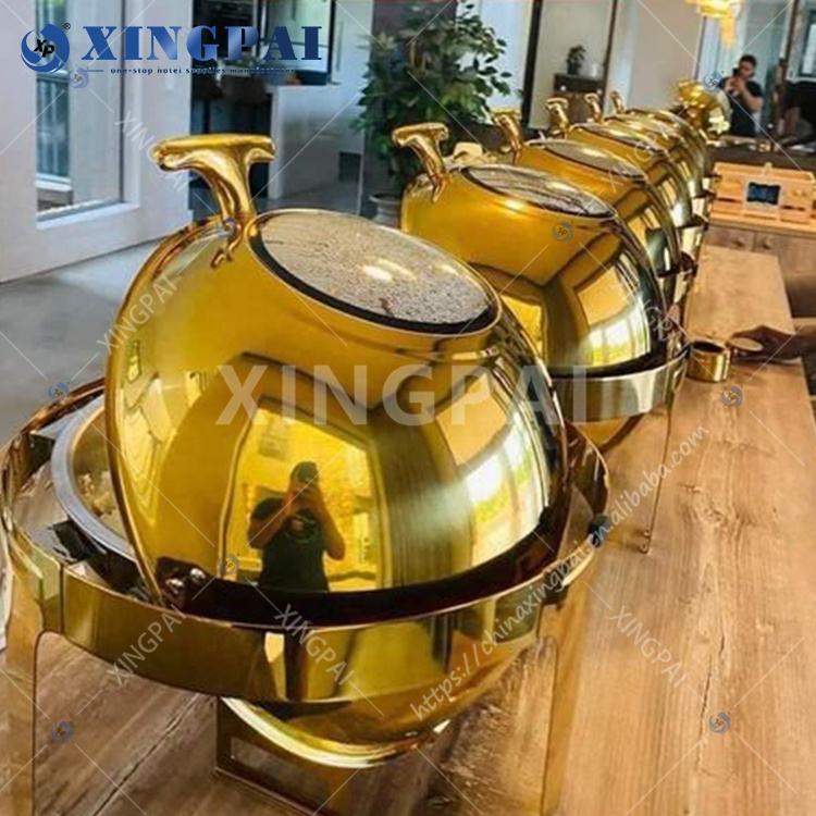 XINGPAI Gold Luxury Buffet Chafing Dish in Dubai Stainless Steel Chef 6 Litre Roll Top Chaffing Dishes With Window