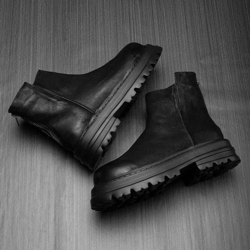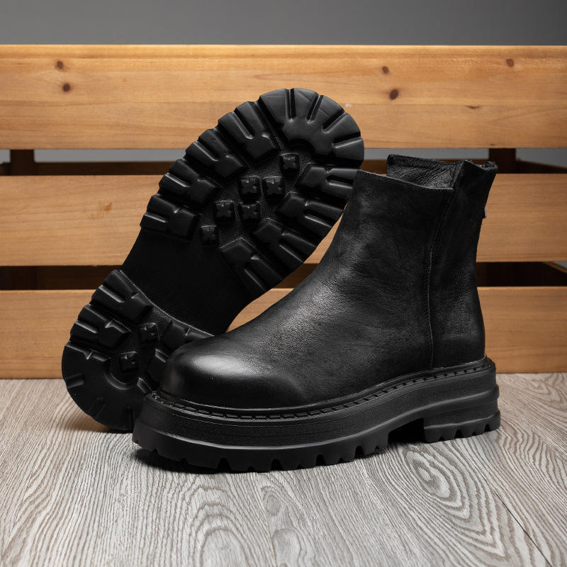 XINZI RAIN Wholesale Light Weight Chunky Boots Black Leather Height Increase Thick Sole Women Men Classic Chelsea Leather Boots